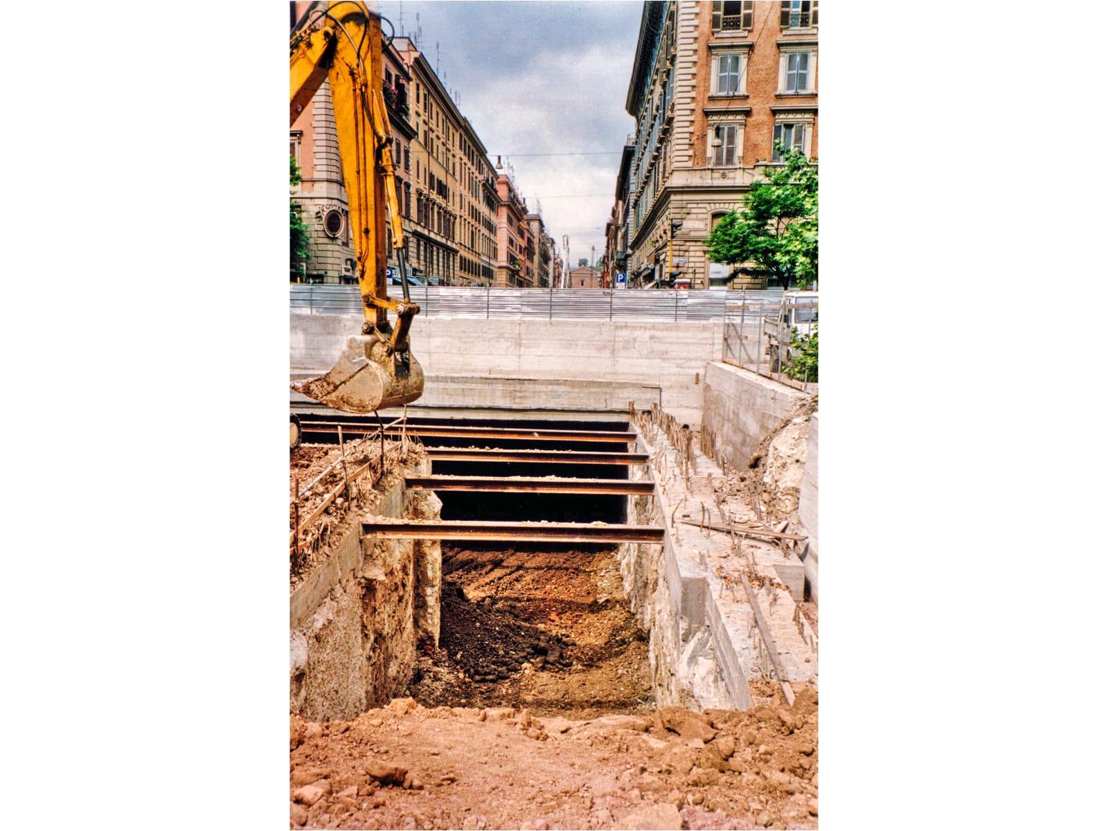 Construction of bottom plugs with Jet Grouting technology, during works for the extension of Rome subway A line.